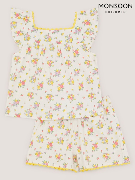 Set de pijamale scurte din bumbac 100% cu imprimeu floral patchwork Monsoon