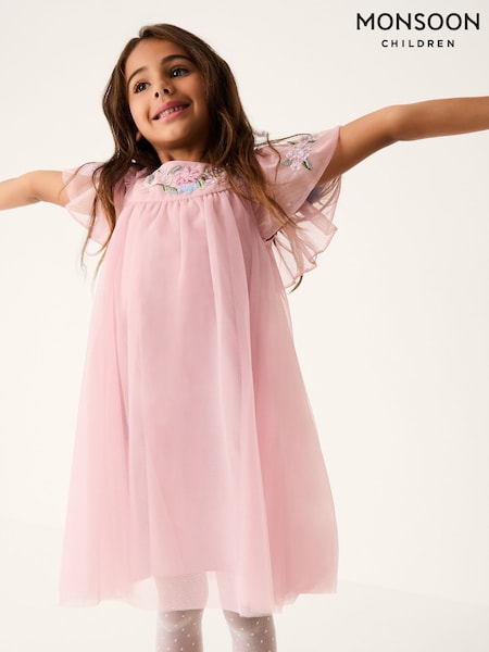 Monsoon Short Sleeve Satin Tulle Bridesmaid Dress
