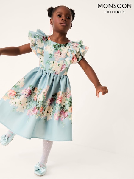 Albastru - Bumbac cu fermoar în față bogat Carouri Gingham School Rochie (3-14ani)