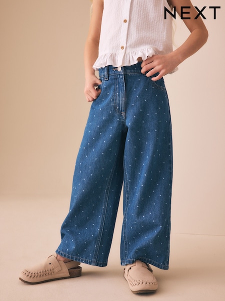 Albastru Mediu cu Buline - Blugi cu picioare largi (3-16ani)
