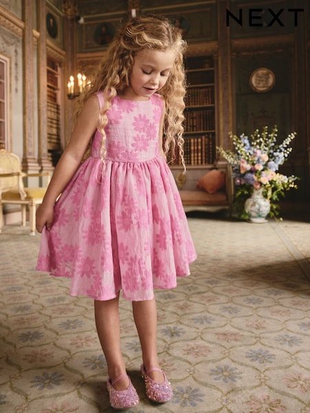 Roz - Floral Texture Rochie (3-16ani)