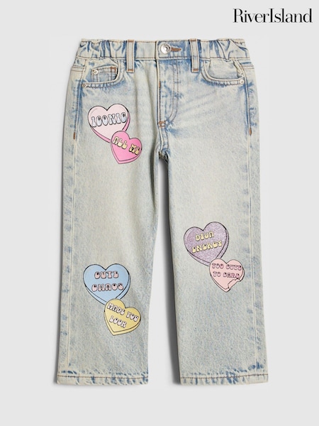 River Island Loveheart Graffiti Straight Leg Jeans