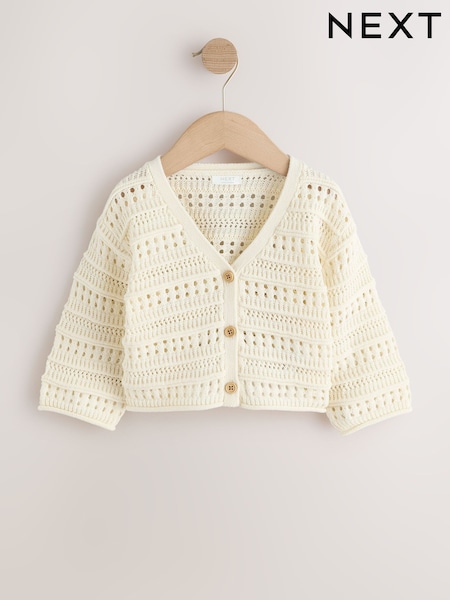 Ecru - V-Neck Crochet Cardigan (3mths-7yrs)