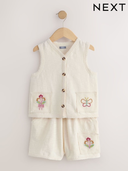 Crem cu broderie - Set de vestă și pantaloni scurți (3-16ani)