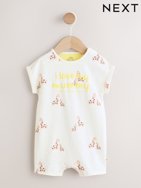 White Printed I Love My Mummy - Salopetă din jerseu pentru bebeluși