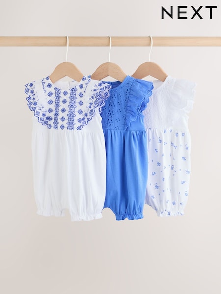 Albastru Floral broderie - Salopetă pentru bebeluși cu broderie (pachet 3)