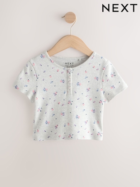 Grey Ditsy Floral - Pointelle Button Front Top (3-16yrs)