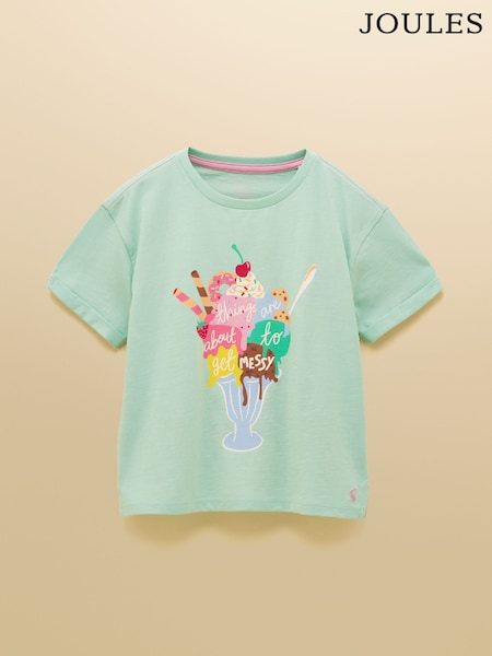 Verde mentol - Joules Girls' Fundays Graphic Short Sleeve T-Shirt