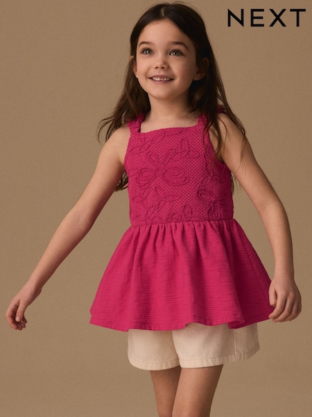 Roșu - Pointelle Button Front Top (3-16yrs)