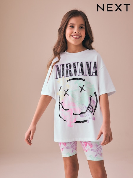 Alb - Nirvana License Oversized T-Shirt and Cycling Shorts Set (3-16yrs)