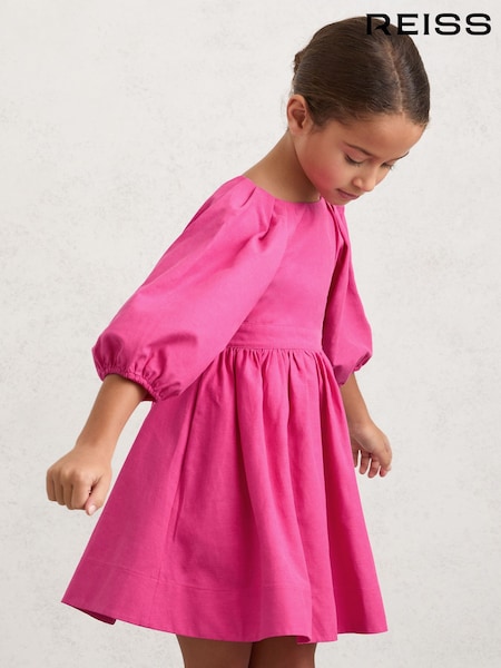 Reiss Mandy Puff-Sleeve Cut-Out Back Dress