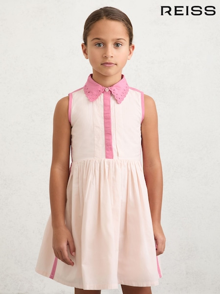 Reiss Odela Cotton Contrast-Trim Collared Dress