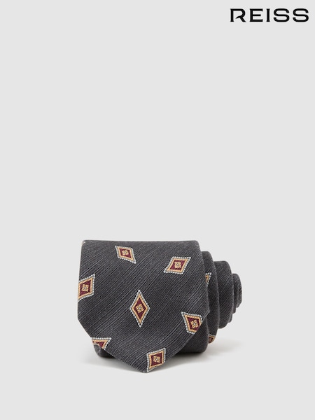 Bleumarin - Reiss Decio Silk Diamond Medallion-Print Tie