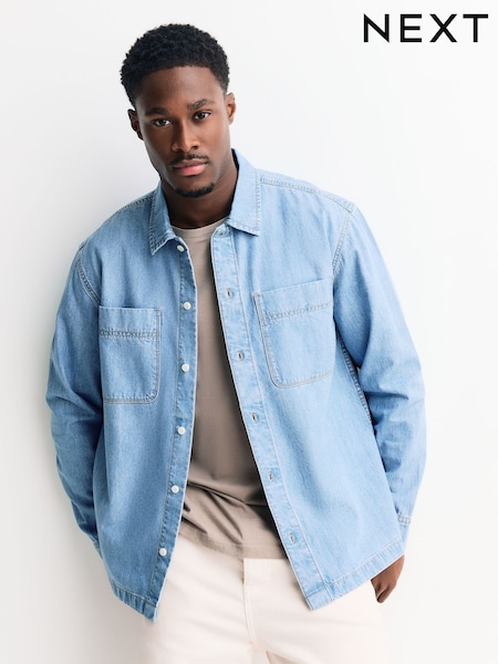 Bleumarin albastru - Cămașă-jachetă din Jersey Twill cu capse