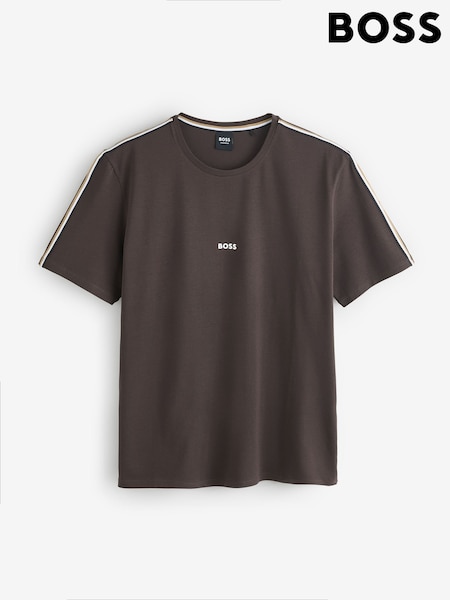 Maro deschis - Mânecă scurtă - Tricou BOSS cu logo și țesătură de vafe