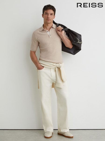 Gri pastel - Reiss Redbury Open-Collar Textured-Knit Polo Shirt
