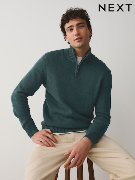 Verde - Regular Fit Linen Rich Quarter Zip Neck Jumper