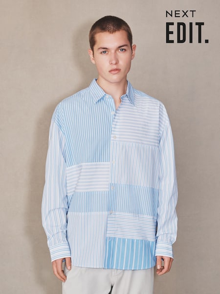 Albastru - Panel Stripe Shirt