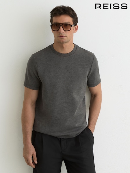 Gri melanj - Reiss Aries Textured Tape-Cuff Modern-Fit T-Shirt