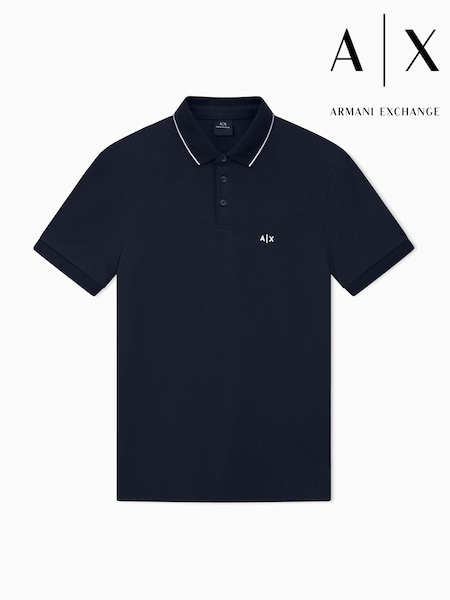Armani Exchange Blue Slim Fit Tipped Pique Polo Shirt