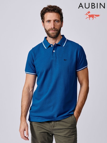Aubin Blue Eden Tipped Pique Polo Shirt