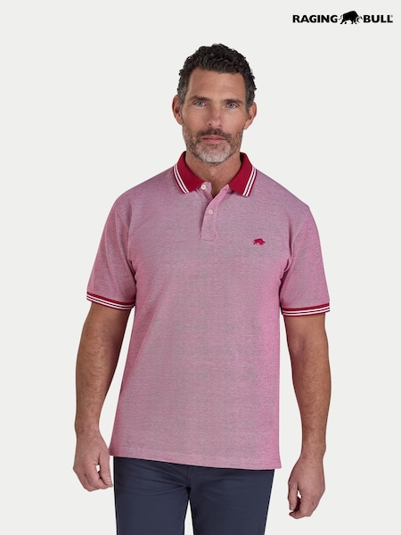 Raging Bull Tipped Collar Two Tone Pique Red Polo Shirt