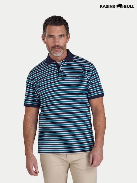 Raging Bull Triple Stripe Pique Blue Polo Shirt