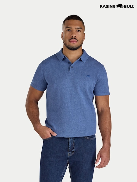 Raging Bull Blue Short Sleeve Knitted Polo Shirt