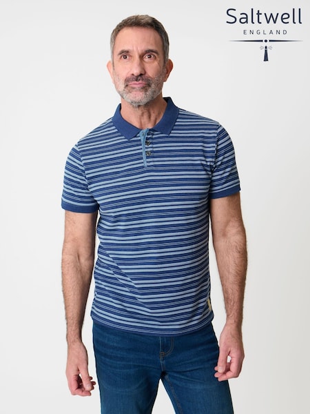Albastru - Saltwell Jacquard Stripe Short Sleeve Polo Shirt