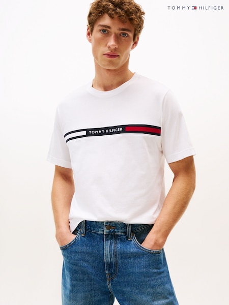 Alb - Tommy Hilfiger Logo Embroidery Insert Jersey T-Shirt