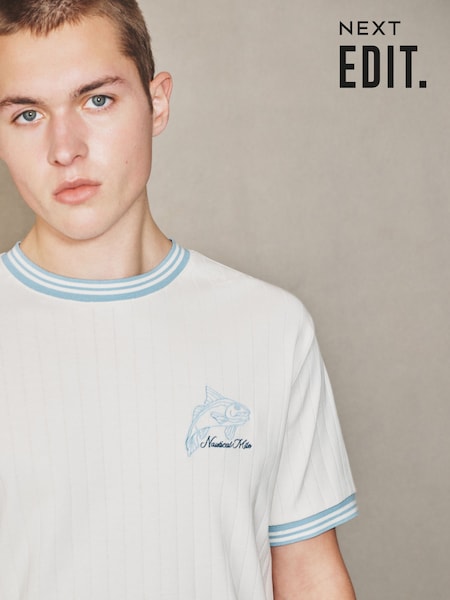 Ecru alb - Textured Tipped Ecru White T-Shirt