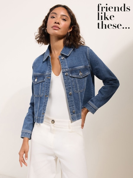 Friends Like These Short Collared Stitch Detail Denim Jacket