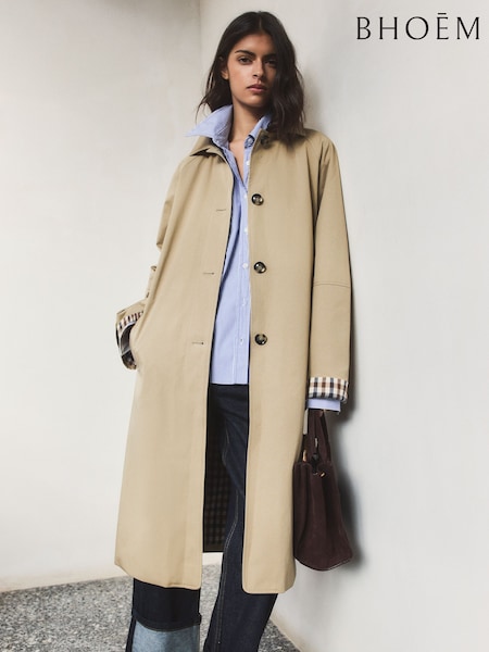 Oversized Check Lining Cotton Trench Coat
