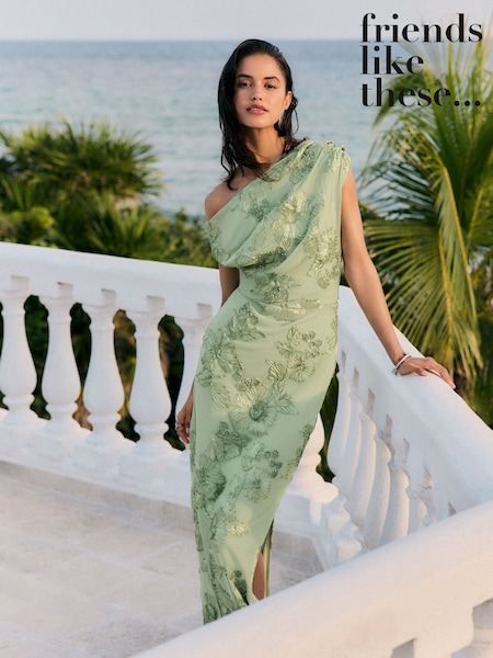Verde deschis - Friends Like These Textured Draped One Shoulder Midi Dress