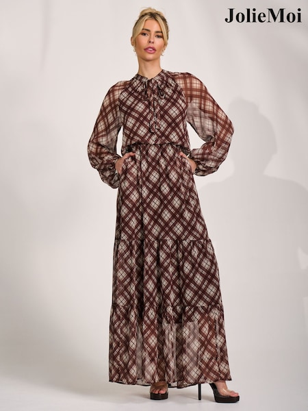 Maro - Jolie Moi Long Sleeve Tie Neck Maxi Dress