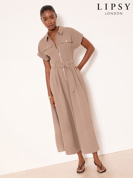 Lipsy Mocha Zipped Through Fit Flare Shirt Dress