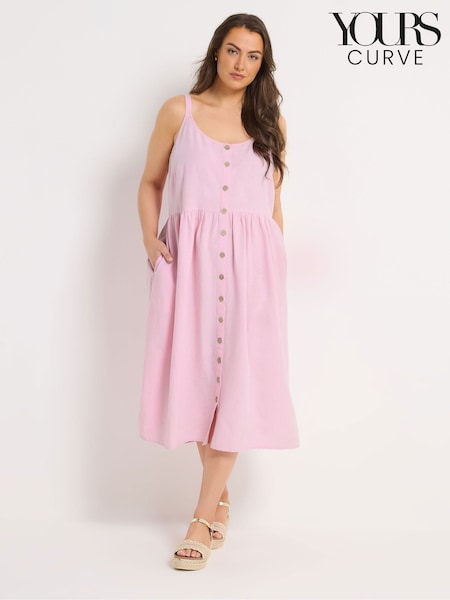 Roz - Yours Curve Linen Blend Button Sundress