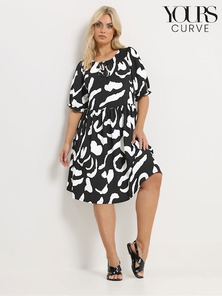 Negru - Rochie cu cravată abstractă Yours Curve