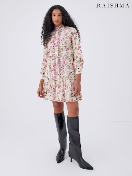 Raishma Sierra Cream Dress A High Neck Three-Quarters Sleeved Mini Dress