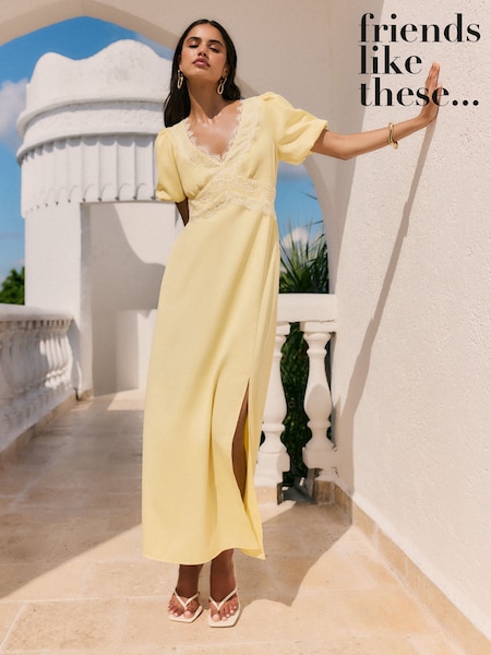 Friends Like These Lace Trim Puff Sleeve Midi Dress