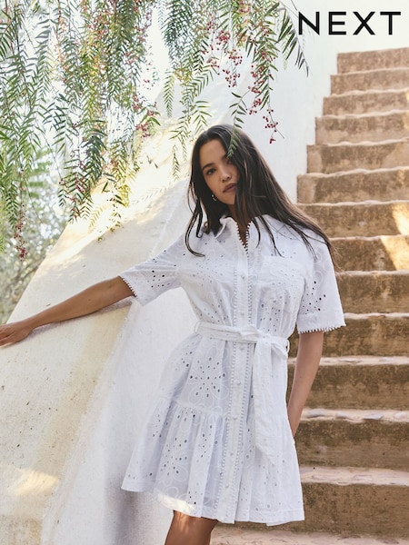 Alb - Lipsy Short Sleeve Broderie Mini Shirt Dress