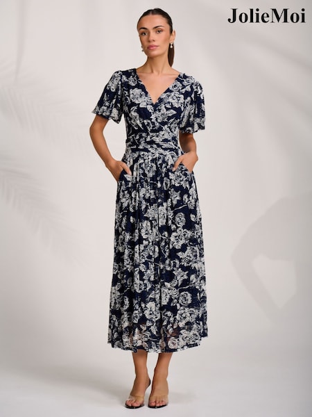 Jolie Moi Puff Sleeve Printed Lace Maxi Dress