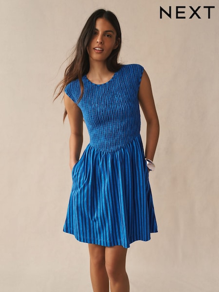 Dungă albastră - Cap Sleeve Shirred Body Jersey Mini Dress