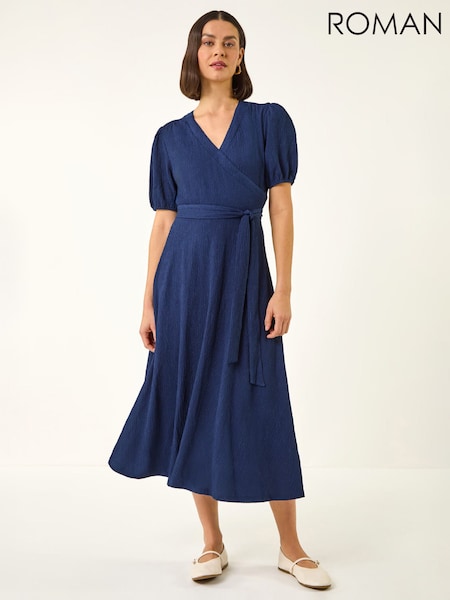 Albastru - Roman Wrap Bodice Belted Midi Dress