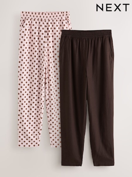 Chocolate/Pink Spot - Stretch Linen Blend Barrel Leg Trousers 2 Pack