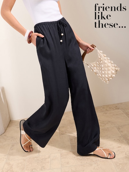 Albastru - Friends Like These Wide Leg Tie Waist Linen Trousers