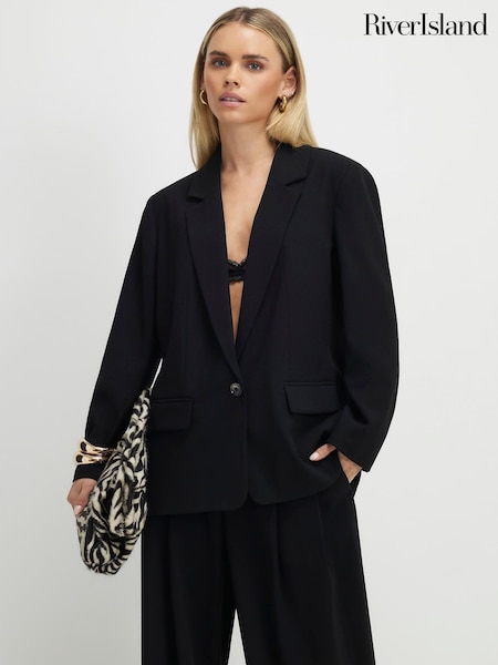 River Island Petite Crepe Ruched Sleeve Blazer