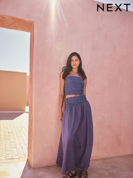 Purple/Blue Gingham - Smocked Waistband Maxi Skirt
