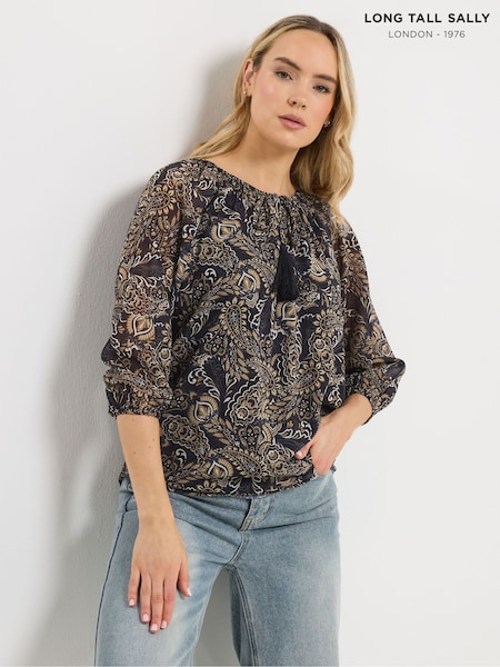 Long Tall Sally Paisley Print Chiffon Boho Blouse