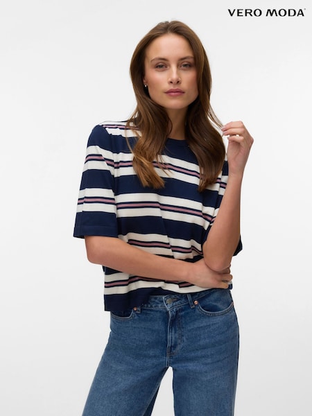 Albastru - VERO MODA Half Sleeve Round Neck Knitted Top